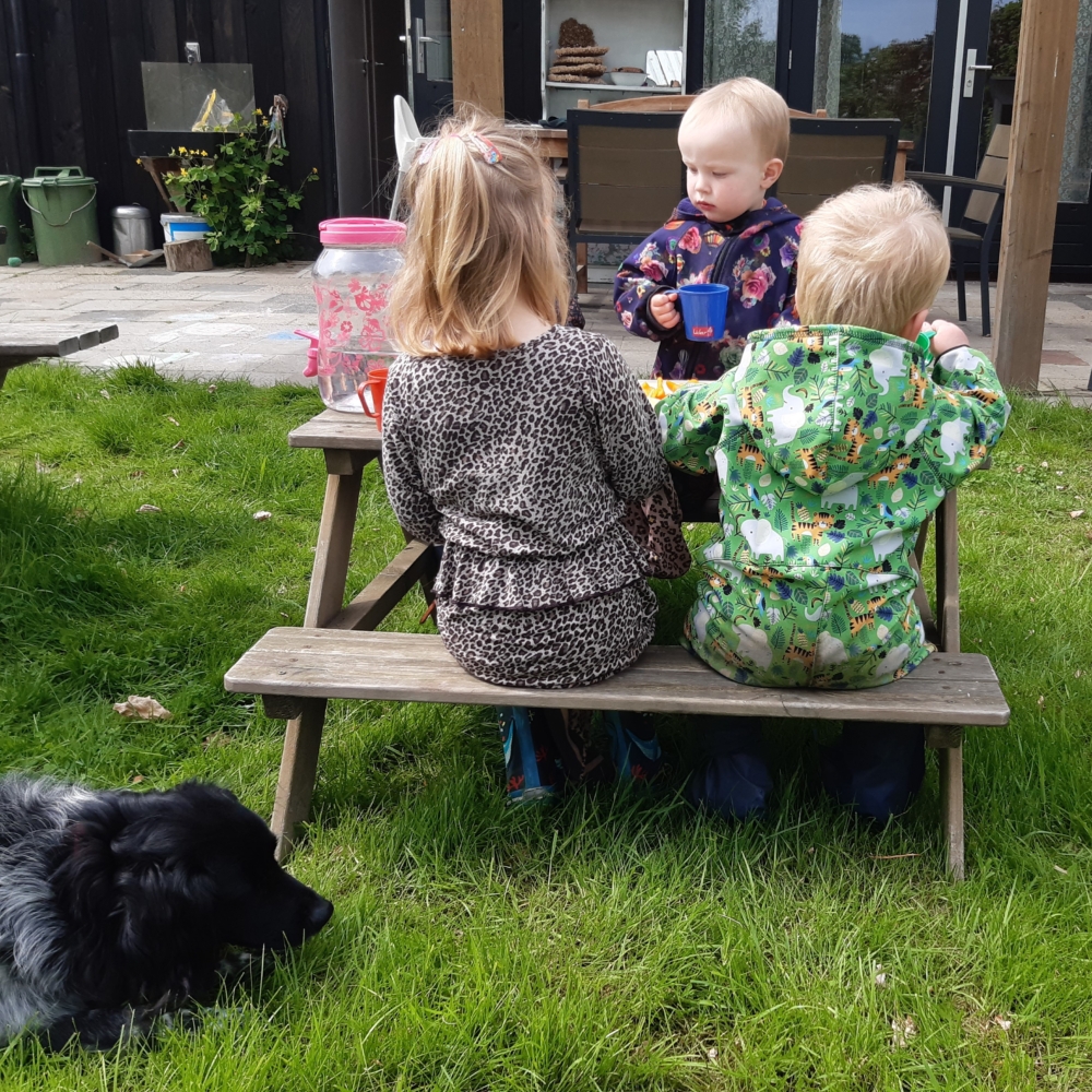 We spelen in de tuin, in het bos, in de Onlanden, bij een speeltuin of een andere plek verrassende plek waar we met de bakfiets kunnen komen. We vullen de picknickmand met fruit en/of een lunch en voldoende drinken zodat we onderweg een fijn plekje kunnen zoeken voor onze buitenavonturen en om onze knorrende buikjes weer te vullen. Af en toe bakken we ons eigen brood waarbij de peuters zelf het deeg kneden of we vieren een mooie dag met een lekkere pannenkoek.